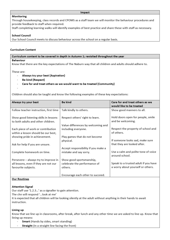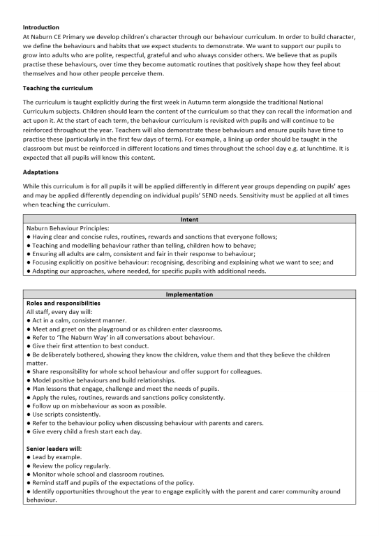 Naburn Church of England Primary School Behaviour Curriculum