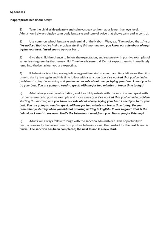 We place friendship at the heart of our school and aim to ensure that all members of our learning community show the highest levels of care and concern towards each other, and for the world around us. We regard faith as being a driver of behaviour through our ethos based upon our teaching of Christian values. By encouraging high standards of behaviour through a positive approach that builds self-esteem and self-discipline, we seek to support our children as they learn to care for, and respect, both themselves and others. This behaviour policy has been developed in consultation with the children, staff, governors and the wider Naburn School community and is simplified in our expectations, The Naburn Way.Naburn Church of England Primary School Behaviour Policy